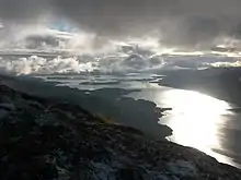 The Trossachs are an area of wooded hills, glens and lochs that lie to the east of Loch Lomond. The name was originally applied only to a small woodland glen that lies at the centre of the area, but is now generally applied to the wider region. They have long been visited by tourists due to the relative proximity of major population centres such as Glasgow and Stirling, and the area remains popular with walkers, cyclists and tourists.[13] The wooded hills and lochs of the area may be considered to represent a microcosm of a typical highland landscape,[13] and the woodlands are an important habitat for many species.[14]