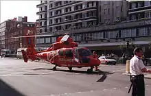 The service's first helicopter was an Aérospatiale SA 365N Dauphin. Built in 1982, it was registered G-HEMS, and delivered in December 1988, in time for the launch of the service in 1989.[10][11] It initially wore a white livery, but was repainted several times, eventually into a red livery following sponsorship by Virgin.[12] It was retired from service in 2000.