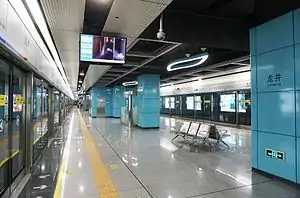 Longjing station (Chinese: 龙井站; pinyin: Lóng Jǐng) is a Metro station of Shenzhen Metro Line 7. It opened on 28 October 2016.