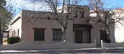The Lordsburg-Hidalgo County Library is a public library located at 208 E. Third St. in Lordsburg, New Mexico. The Lordsburg Women's Club established Lordsburg's library in 1919; it originally operated out of spaces in other public buildings and houses. The Works Progress Administration built a permanent building for the library in 1936–37. The library building has a Pueblo Revival design with adobe walls and vigas supporting the roof. A New Deal-commissioned oil painting titled Landscape in Talpa, which was given to the library upon its opening, decorates the inside. The library currently has over 20,000 volumes and is one of two county-funded libraries in New Mexico.[2]