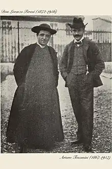 Monsignor Lorenzo Perosi (21 December 1872 – 12 October 1956) was an Italian composer of sacred music and the only member of the Giovane Scuola who did not write opera. In the late 1890s, while he was still only in his twenties, Perosi was an internationally celebrated composer of sacred music, especially large-scale oratorios. Nobel Prize winner Romain Rolland wrote, "It's not easy to give you an exact idea of how popular Lorenzo Perosi is in his native country."[1] Perosi's fame was not restricted to Europe. A 19 March 1899 New York Times article entitled "The Genius of Don Perosi" began, "The great and ever-increasing success which has greeted the four new oratorios of Don Lorenzo Perosi has placed this young priest-composer on a pedestal of fame which can only be compared with that which has been accorded of late years to the idolized Pietro Mascagni by his fellow-countrymen." Gianandrea Gavazzeni made the same comparison: "The sudden clamors of applause, at the end of the [19th] century, were just like those a decade earlier for Mascagni."[2] Perosi worked for five Popes, including Pope Pius X who greatly fostered his rise.