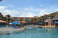 The tourist area of the town is the area between the town proper and the shoreline. This area has a nine-hole golf course and a line of hotels and resorts facing the ocean,[4] which served over 900,000 hotel guests in 2011.[10]