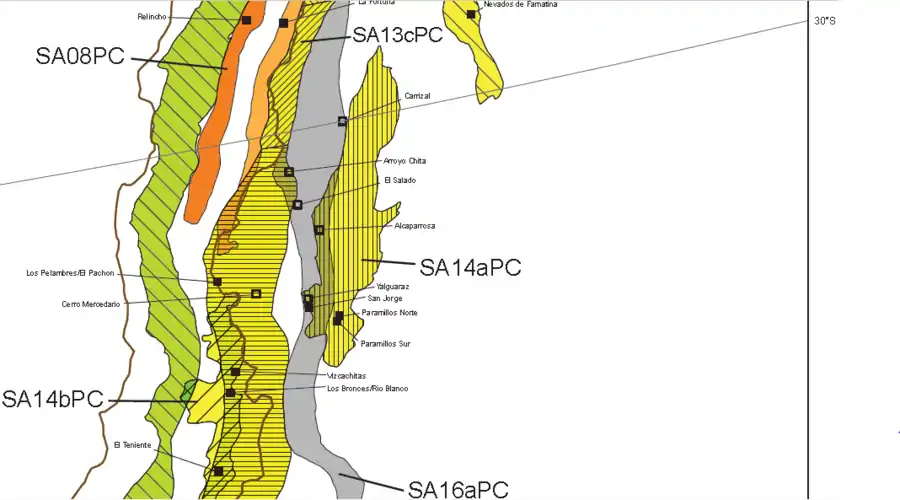 - ↑ Sillitoe, Richard (1973). "Geology of the Los Pelambres Porphyry Copper Deposit, Chile". Economic Geology. 68 (1): 1–10. doi:10.2113/gsecongeo.68.1.1.
