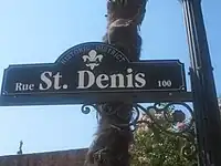By decision of his parents, St. Denis emigrated temporarily to France to acquire a higher level of education. In late 1699, St. Denis joined the second expedition of Pierre Le Moyne, Sieur d'Iberville (his first cousin), which departed from La Rochelle and travelled to Louisiana.[2] St. Denis commanded a small garrison at Fort de La Boulaye, named for a commune in the Bourgogne region of France. The fort was constructed in 1700 on the Mississippi River about 20 kilometers below the future development of New Orleans; it was designed to protect French interests against the Spanish and English in the region. St. Denis also commanded a fort at Biloxi Bay, where the French founded another settlement. St. Denis also explored to the west of the bay and up the Mississippi River, where he journeyed to the lower Red River. These expeditions to the northern areas allowed him meet the Karankawa and Caddo tribes, from whom he learned wilderness skills specific to the area.[2]