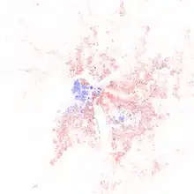 Since 2003, Louisville's borders have been the same as those of Jefferson County, after a city-county merger.[15] The official name of this consolidated city-county government is the Louisville/Jefferson County Metro Government,[16] abbreviated to Louisville Metro.[17] Despite the merger and renaming, the term "Jefferson County" continues to be used in some contexts in reference to Louisville Metro, particularly including the incorporated cities outside the "balance" which make up Louisville proper. The city's total consolidated population as of the 2020 census was 782,969.[18] However, the balance total of 633,045[19] excludes other incorporated places and semiautonomous towns within the county and is the population listed in most sources and national rankings.