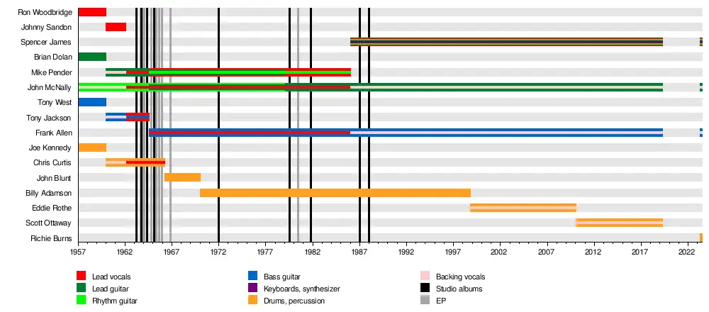 • Mike Pender: lead and backing vocals, lead and rhythm guitar