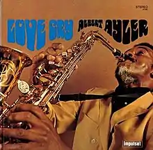 Love Cry is a 1968 album by jazz saxophonist Albert Ayler, released on Impulse! Records in 1968. It was originally reissued on CD by GRP with two previously unreleased alternate takes and one previously unreleased outtake. The cover claimed that "Universal Indians" is presented as a longer extended edit, but it is actually identical to the original LP. The later twofer CD edition (paired with "The Last Album") discards the bonus tracks.