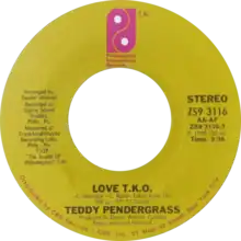 "Love T.K.O." is mainly associated with R&B and soul artist Teddy Pendergrass, who recorded the song for his 1980 album TP, releasing it as a single the same year. Arranged by Dexter Wansel, it reached No. 2 on the Billboard R&B chart and No. 44 on the Billboard Hot 100.[3]