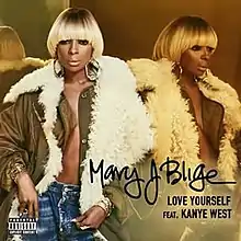 "Love Yourself" is a song recorded by American singer Mary J. Blige featuring rapper Kanye West. It was written by Blige, West, Charles Hinshaw, David D. Brown, Darhyl "DJ" Camper, Jr. for her thirteenth studio album, Strength of a Woman (2017), while production was helmed by the latter. The song contains samples from "Nobody Knows" (1970) by The SCLC Operation Breadbasket Orchestra And Choir. Due to the inclusion of the sample, I. Andrews is also credited as a songwriter. "Love Yourself" released on March 30, 2017, as the third single from Strength of a Woman.
