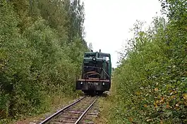 The Loyginskaya forestry railway first line was built in 1947, in the area of Ustyansky District, Arkhangelsk Oblast, starting from the village of Loyga. The total length of the railway at the peak of its development exceeded 308 kilometres (191 mi), of which 200 kilometres (120 mi) is currently operational. The railway operates a scheduled freight services from Loyga, and is used for transportation of felled logs and forestry workers.[2] In 2014 a railway bridge was built over the river Porsha.[3]