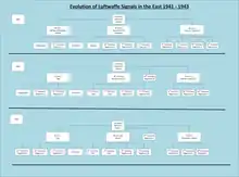 With the expansion of the war into fronts, the importance of Luftwaffe signals in the west increased. Luftflotte 3 became increasingly dependent on the intelligence reports from the Referat. The radar organisation that by 1942 had pass the experimental stage and was now active units. In the same year the unit Signals Regiment West that was assigned to Luftflotte 3 and organised into three battalions.[22]