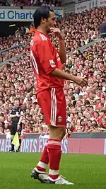 García did not make so much of an impact in the 2005–06 campaign, although he weighed in with some vital goals, including one against Chelsea to put them out of the FA Cup in the semi-finals.[18] He was suspended for the final victory over West Ham United, having been sent off in a league game just days after his semi-final winner, against the same opposition.[19] Early into the season, he also scored the third goal in the Reds' 2005 UEFA Super Cup 3–1 final defeat of PFC CSKA Moscow.[20]