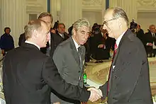![]() Luzius Wildhaber (right) shaking hands with Vladimir Putin | |