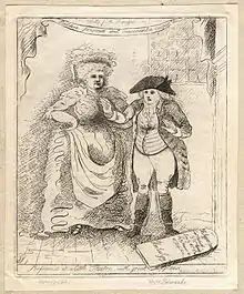 ![]() Lydia Webb (right) in an etching by James Sayers, 1786 | |