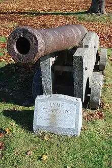 The Lyme Common occupies the center of the village of Lyme, located about 1.5 miles (2.4 km) east of the Connecticut River.