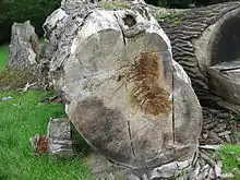 In 1929 the Earl of Powis decided that he could no longer afford the cost of maintenance and offered the house through the Office of Works to the nation. The Earl also offered the house to anyone for £1 to anyone who would put it in order.[16] The house was then surveyed by the architect A B Waters and his report in the Montgomeryshire Collections provides detailed plans and elevations of the house, as it stood.[17] The furnishings and fittings of the House were then offered for sale at an auction on 25 October 1929 by the Estate department of Harrods. A last minute offer of £10,000 was made by the National Trust through the Office of Works to preserve the house for the Nation, but the Office of Works did not consider that this was a sufficient sum for the repair work, so the sale went ahead.[18] This was followed on 20 May 1931 by a sale of the structural elements of the house. A fine carved staircase with diamond-rusticated newels had already been removed to Aldborough Hall, Ripon, Yorkshire. Much of the other timber was purchased by Kenneth Hutchinson-Smith, an architect/builder from Wolverhampton, where it was used for building mock, Tudor houses.[19]
