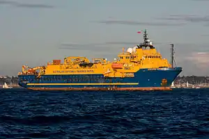 In December 2007, the Australian government tasked the Oceanic Viking with monitoring Japanese-flagged vessels involved in whaling in the Southern Ocean.[10] During the seven-week surveillance exercise, personnel aboard Oceanic Viking filmed Japanese whalers and their activities to gather evidence for possible legal action.[11] The machine guns were secured below deck during the surveillance mission.[12] During the deployment, two Sea Shepherd Conservation Society protesters who boarded the whaling ship Yūshin Maru No. 2 were transferred to Oceanic Viking after being detained by the Japanese.[11] The Australian government regarded the operation as successful,[13] but it was criticised by some political commentators, such as Dennis Shanahan, as not having been effective in countering Japanese whaling, and potentially harming Japanese-Australian relations.[14]
