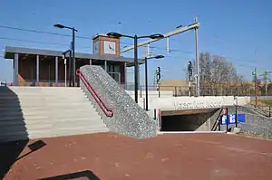 Maastricht Noord (lit. 'Maastricht North') is a railway station in the north of Maastricht, the Netherlands. Construction of the station started in March 2011 and after a few delays it opened on 17 November 2013[1] on the Maastricht–Aachen railway, which is part of the Heuvellandlijn. The station features 360 car parking spaces and park and ride facilities with connections to the centre of Maastricht.
