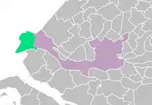 Location of the Maasvlakte (green) in the municipality of Rotterdam (purple)