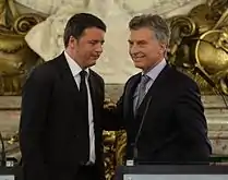- ↑ Piqué, Elisabetta (23 November 2015). "Matteo Renzi llamó a Macri para felicitarlo". La Nacion. Retrieved 23 November 2015.