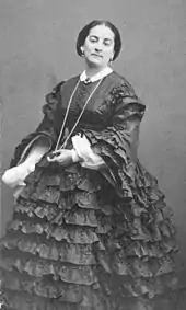 Another creation was Olga in Daniel Auber's La circassienne, premiered on 2 February 1861 by the Opéra-Comique at the second Salle Favart.[7] The Musical World (16 February) found her "perfectly dazzling with grace and beauty in her three rich costumes, ... especially in the first act, in which her entrance enchanted the whole house."[4] Vocally, her portrayal in the quartet in the first act was "charming and natural" and in the challenging ballad à vocalises, grand air, and love duet of the third act, "graceful and already brilliant" without however being at the level of a Laure Cinti-Damoreau or Caroline Miolan-Carvalho.[4]