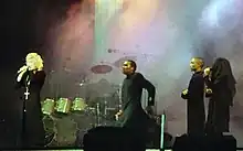 Catholic iconography has been Madonna's constant.[18] She is credited with even popularizing the cross in pop music as a decorative object, which she uses in her shows and videos.[55] Martin commented that her love affair with the cross "has spanned her music career".[53] As her career continued, she involved Kabbalistic motives in her work and reportedly refused to work on Friday night and Saturday, as a result in her observance of the Jewish Sabbath.[24][56] Religious Jewish symbols and Hebrew letters featured in some of her works, and Madonna was seen numerous times, with the red string around her wrist to ward off the evil eye,[57] a trendy practice among celebrities during Bush era.[28] Among her many other religious references, she included sufism themes.[50]