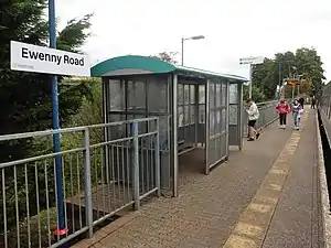 Maesteg (Ewenny Road) railway station is one of two railway stations that serve the town of Maesteg in Wales. It is located adjacent to the Ewenny Road Industrial Estate to the south of Maesteg on the Maesteg Line from Cardiff via Bridgend. The other station, which is the terminus of the Maesteg Line, is named Maesteg.