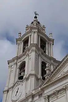 Spanning two 50-metre-high (160 ft) towers in the Palace of Mafra, it features 120 bells, divided into carillon (45 bells in north tower, 53 in the south tower), liturgical and clock bells.[2][3]