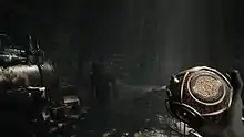The game features a manual save style; there is no autosave. To save the game, the player has to find "safe rooms". These rooms have green-tinted patterned doors, and inside the rooms are gramophones the player has to play to save the game.[5] This saving system has been compared to that in the Resident Evil games.[6][7][8][1] The game has also been compared to Outlast in terms of its gameplay style,[9][8] and The Evil Within 2 and Silent Hill for its atmosphere.[10]