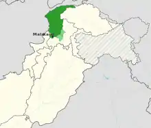 The Malakand Agency (Pashto: ملاکنډ ایجنسيۍ) was one of the agencies in the North West Frontier Province of British India and later of Pakistan until 2010.[1] It included the princely states of Chitral, Dir and Swat, and an area around the Malakand Pass known as the Malakand Protected Area.[2] The largest city in the area was Mingora, while the three state capitals were Chitral, Dir, and Saidu Sharif. In 1970, following the abolition of the princely states, the agency became the Malakand Division, which was divided into districts, one of which was the Malakand Protected Area, known as Malakand District. In 2000 the Malakand Division was abolished. Despite the constitutional changes since 1970, the expression Malakand Agency is still used, sometimes of the entire area of the former Agency, but more often of Malakand District.