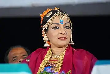 Mallika Sarabhai is an activist and Indian classical dancer and actress from Ahmedabad, Gujarat, India. Daughter of a classical dancer Mrinalini Sarabhai and space scientist Vikram Sarabhai, Mallika is an accomplished Kuchipudi and Bharatanatyam dancer[1] and performer who has specialized in using the arts for social change and transformation.