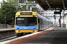 The station is currently served by Pakenham, Cranbourne, and Frankston line trains—all on the metropolitan railway network. The Pakenham line runs between Pakenham station and Flinders Street station via the City Loop.[12] The Cranbourne line also follows a similar route, joining the Pakenham line at Dandenong before continuing to the city.[47] Due to low patronage, the Cranbourne and Pakenham lines only stop at the station during off-peak periods.[48][49] The Frankston line runs from Frankston station south east of Melbourne, joining the Cranbourne and Pakenham lines at Caulfield station before continuing onto the Werribee or Williamstown lines via Flinders Street station.[13] From 2025, the Pakenham and Cranbourne lines will run via the Metro Tunnel before continuing onto the Sunbury line to Sunbury.[50]