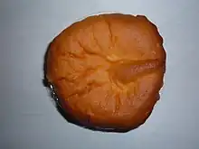 Mamón is a very light chiffon or sponge cake known for its soft and fluffy texture. It is traditionally baked in crenelated tin molds which gives it a characteristic cupcake-like shape. It is typically slathered in butter and sprinkled with white sugar and grated cheese. Mamón is commonly eaten for merienda.[1][4] In the Visayas regions, mamón is known as torta mamón, torta Visaya (or torta Bisaya), or simply torta. Although the name is derived from Spanish torta, "cake", in some Philippine regions torta could also mean "omelette". The Visayan versions are traditionally denser and greasier in texture. They were traditionally made with lard and use palm wine (tubâ) as the leavening agent.[2][5]