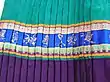 In general, the design and construction of the Xiuhefu is not bound by any traditional clothing making rules.[50] The mamianqun used in the Xiuhefu can either be an A-line, pleated skirt[52] or a pleated circle skirt.[50][53] It has panels of flat fabric, which is embellished with decorative designs which uses an embroidery technique known as Chaoxiu (Chinese: 潮绣).[52] Compared to the historical mamianqun which has qunmen (裙门; 'skirt door') or mamian (马面裙; 'horse face') created by the overlapping characteristics of the skirt, the flat and straight panels of fabric used in the Xiuhefu are added on top of the pleated skirt, like a pendulum; it can also have more than two visible flat panels.[50][53]