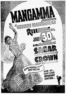- ↑ "Mangamma Sabatham". The Indian Express. 30 July 1943. p. 3. Retrieved 18 February 2021.