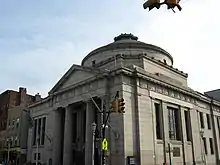 Manhattan Avenue is a north-south thoroughfare in the neighborhoods of Greenpoint and Williamsburg in Brooklyn, New York City. It is the major shopping street in Greenpoint while it is mostly residential in Williamsburg. The stretch through Greenpoint is also called Little Poland for its high concentration of Polish culture and of Polish-named businesses and signage. The northern end was formerly connected to Long Island City, Queens by the Vernon Boulevard Bridge across Newtown Creek and the southern end is at Broadway. The southern part of the avenue is one-way northbound while the portion in Greenpoint is bidirectional. The IND Crosstown Line of the New York City Subway (G train) runs under Manhattan Avenue north of McCarren Park, and has two stations, Nassau Avenue and Greenpoint Avenue.