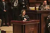 On 6 January 2018, Vicuña was formally sworn in as Vice President of Ecuador.[9] She was confirmed after 70 assembly members voted for her to take office, 17 lawmakers voting against the nomination, and 19 abstentions.[10] She was the second woman to ever serve as Vice President of Ecuador, after Rosalía Arteaga took office in 1996.[7]