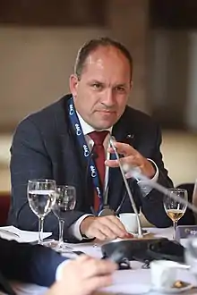 Marek Výborný (born 10 July 1976) is a Czech politician, who has served as the Czech Minister of Agriculture in Petr Fiala's Cabinet since June 2023.[1][2] He was also the leader of KDU-ČSL between 2019 and 2020. Výborný resigned on the post on 19 November 2019 after his wife died and he became a single parent for his three children. He left the position on 25 January 2020.[3]