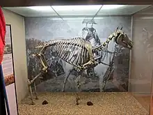 Petre brought the horse back to the United Kingdom and sold him on to Lieutenant-Colonel Angerstein of the Grenadier Guards. Marengo stood at stud (unsuccessfully) at New Barnes, near Ely, at the age of 27. He eventually died aged 38 and his skeleton (minus two hooves) was preserved and later passed to the Royal United Services Institute and is now on display at the National Army Museum in Chelsea, London.[1] One of the remaining hooves was given to the officers of the Brigade of Guards by John Julius Angerstein as a snuff box. The fourth hoof was mounted as a silver inkwell and retained by the family; it is still owned by the family but is now on loan to the Household Cavalry Museum. The Duke of Wellington was asked to disinter his own horse, Copenhagen, to be exhibited alongside Marengo, but refused to do so.[2] Coincidentally, one of Copenhagen's hooves was also later used as an ornament.