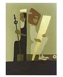 Influenced by the powerful visual art of the Expressionists, in addition to her interest for pre-historic and African art, she began to explore the condensation of the meaning in symbolic images.[2] Her artistic experimentation combined, in the following years, with a more spiritual approach. She met padre Giovanni Vannucci, who became for her a guide in her development towards a religious and ecumenical point of view.[3]