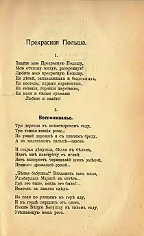 The first published works by Moravskaya earned positive reviews from literary figures such as Vladislav Khodasevich, Igor Severyanin, Sasha Chorny. Anna Akhmatova, whose poems critics compared with Moravskaya's poems, had recognized her as a "fellow-worker"[transl.note 2] and later several times gifts her own books to her.[14] Gippius in her letter to Chukovsky described Moravskaya as "extremely talented person".[2] And Maria Moravskaya was getting especial support from Voloshin who was of a high opinion about her creative perspectives and predicting role of "second Cherubina de Gabriak".[4] And Cherubina herself (her real name is Elisaveta Dmitrieva) recognized young Polish as her creative successor and 18 January 1910 she wrote to Voloshin: