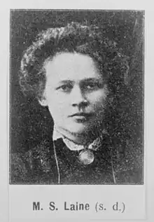 Paaso-Laine contested the 1907 elections on the Social Democratic Party's list in Tavastia South and was one of 19 women elected to parliament. However, she lost her seat in the 1908 elections.[1] During her time in parliament she sat on the Committee on Legal Affairs,[1] and attracted attention and criticism for dressing in an upper-class style.[2][3]