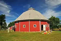Maria and Franklin Wiltrout Polygonal Barn, also known as the Alfred Barn, is a historic 14-sided barn located in Fairfield Township, DeKalb County, Indiana. Built in 1910, the structure is a two-story, wood-frame structure measuring 60 feet in width. It is topped by a two-pitch gambrel type roof with a 14-sided cupola. It is one of three 14-sided barns left in Indiana.[2]: 2