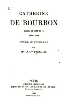 - 1865, Catherine de Bourbon, soeur de Henri IV, 1559-1604, étude historique[6] (text)