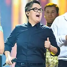 In September 2015, she became a judge on the singing competition Zvezde Granda.[18][19] As a mentor on the show, she had the winning contestant for two consecutive seasons with Džejla Ramović in 2019 and Mahir Mulalić in 2021.[20][21] Between 2015 and 2016, she released a series of three songs: "Pametna i luda", "Sama i nervozna" and "Svoja i tvoja".[22] In March 2016, Šerifović held a concert at Zetra Hall, Sarajevo.[23] Same month she also performed at the National Theater in Belgrade, which saw polarizing reception from the general public and indignation from actors' union.[24][25] In December 2016, Šerifović released "Deo prošlosti" under IDJTunes.[26] A year later in November, she released the single "11".[27] Šerifović again performed to a sold-out Belgrade Arena on 25 May 2018.[28][29]