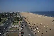 ![]() Marina Beach as seen from the Chennai Lighthouse Marina Beach as seen from the Chennai Lighthouse | |