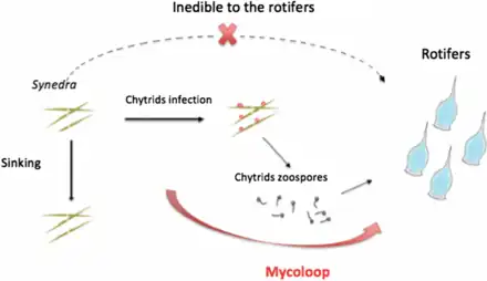 - ↑ Kagami, M., Miki, T. and Takimoto, G. (2014) "Mycoloop: chytrids in aquatic food webs". Frontiers in microbiology, 5: 166. doi:10.3389/fmicb.2014.00166.