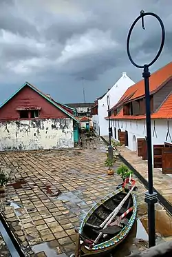 ![]() A former storage area within the Maritime Museum (Indonesian: Museum Bahari). In the foreground is the iron hook that once supported a wooden gallery that keep the stored metals from rain. | |