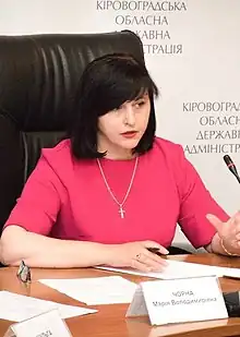 - 1 2 "Зеленський призначив головою Кіровоградської ОДА Марію Чорну". Укрінформ-Украина. 28 May 2021. Retrieved 2021-05-28.