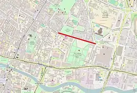 East-west street track extends Krasińskiego Street to the east. It ends while meeting Ossoliński avenue and Piotrowskiego Street at Ossolińskich roundabout.